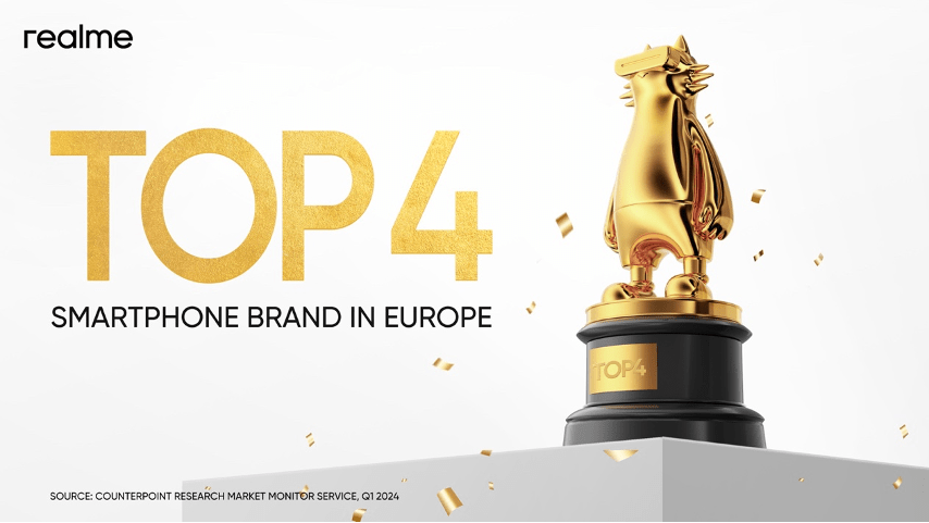 realme, najszybciej rozwijająca się marka smartfonów na świecie, zanotowała znaczący wzrost na europejskim rynku smartfonów. Zajęła 4. miejsce wśród producentów telefonów oferujących swoje urządzenia w Europie. Według najnowszych danych Counterpoint Research w I kwartale 2024 r.[1] marka osiągnęła imponujący wzrost r/r wynoszący 59 proc.